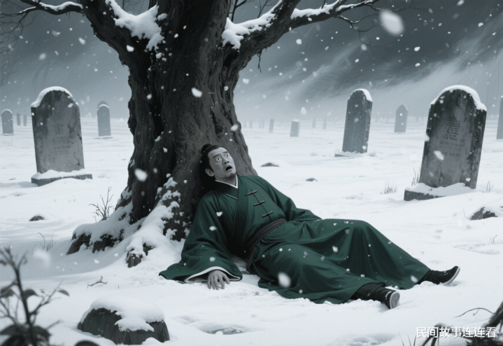 也不知过了多久,凛冽的风雪吹醒了崔先生。他费力地睁开双眼,却惊愕地发现,哪里有什么村寨,哪里又有什么明亮的大屋?周围只有一片阴森的坟场,而自己正躺在一棵大树底下。